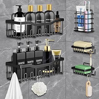 【Estante de ducha colgante】: el organizador de baño consta de 5 piezas para diferentes propósitos, 2 estantes de ducha, 2 estantes de jabón y 1 soporte para cepillo de dientes. Aprovecha al máximo el espacio y organiza tu espacio para hacerte la vida más fácil. La valla puede evitar que los artículos se caigan