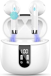 56 Horas de Reproducción y Pantalla de Potencia Led: Los cascos inalambricos proporcionan hasta 8 horas de uso con una sola carga, más el estuche de carga para un total de 56 horas de uso. En solo 1 horas, puedes recargar completamente el estuche debido a que dispone de carga rápida USB-C. El diseño de pantalla LED% le permite controlar el estado de la batería, precisión la potencia restante de los auriculares bluetooth inalámbrico y la funda de carga.