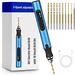 Compatibilidad de accesorios versátiles: el juego incluye 10 brocas de diferentes tamaños (0.6, 0.8, 1.0, 1.2, 1.4, 1.5, 1.6, 1.8, 2.0, 2.2 mm) de alta calidad HSS (acero de alta velocidad), que son especialmente resistentes y duraderas. Con este taladro manual para madera, puedes crear obras de arte de madera únicas o joyas como letreros de madera, figuras, pulseras, collares y llaveros, y vivir tu creatividad.