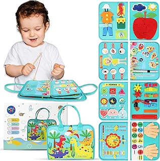 😊DESARROLLO COGNITIVO MEJORADO – Fabricado en suave y duradera lana de calidad, este busy board verde claro estimula el aprendizaje y la destreza con su página de pesca de peces, ideal para niños y niñas. Libro niños 2 años
