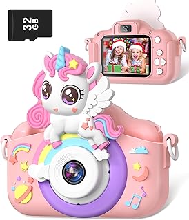 Un regalo perfecto: Esta cámara para niños es el regalo ideal para niña 3 4 5 6 7 8 9 10 11 12 años. Es perfecta para cumpleaños, el Día del Niño, Pascua, el regreso a clases y Navidad. Su diseño de dibujos animados, lindo y atractivo, despierta el interés de los niños por la fotografía y se convierte en su compañero creativo