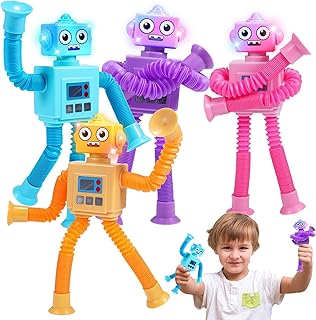 【Robot Telescópico Ventosas Juguetes】Paquete de 4 tubos robot luminosos (azul, rosa, morado y amarillo). El juguete con ventosa es un juguete sensorial novedoso e interesante que no sólo atrae la vista de su hijo (brilla), sino que también mejora su experiencia sensorial (extensible), desvía su atención y calma sus emociones. Créeme, tus hijos disfrutarán de la experiencia visual y se divertirán jugando.
