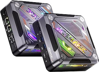 【Conectividad multipantalla para un estilo único】Este mini PC se puede conectar a tres pantallas (HDMI 2.1+Tipo-C+DP 2.0) y admite pantalla 8K para efectos visuales nítidos y realistas. 5 modos de iluminación diferentes: AUTO/ON/BREATH/RAIN BOW/CYCLE crean un impacto visual y una atmósfera de juego únicos, proporcionando una experiencia de juego más envolvente.
