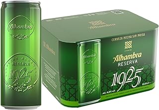 Pack de 12 latas de cerveza extra; equilibrada e intensa, Alhambra Reserva 1925 está elaborada con la variedad de lúpulo Saaz, que le aporta toques ligeramente florales