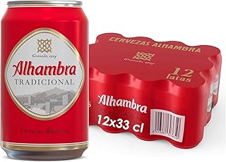 Pack de 12 latas de 33cl de cerveza Alhambra Tradicional, una cerveza lager suave, de sabor ligero