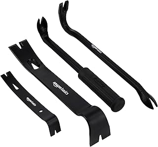Conjunto de 4 piezas para retirar clavos que incluye: Barra plana de 29,85 cm, barra plana de 17,78 cm, barra con garra de 27,6 cm y barra para quitar clavos ultrarresistente de 29,85 cm