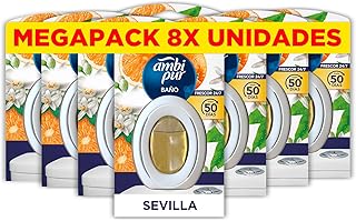 Ambipur Ambientador Para Baño, Elimina y Previede De Malos Olores En El Cuarto De Baño, Fragancia Naranja y Canela, Pack de 8 Unidades