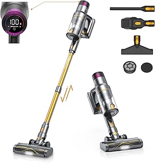 【Motor sin escobillas de 500W + succión fuerte de 40kpa】 El potente motor de aonus puede proporcionar una succión de hasta 40000Pa. Al mismo tiempo, con el potente cepillo para pisos LED, puede limpiar fácilmente cualquier parte de la casa. Perfecto para limpiar escombros, polvo, pelo de mascotas, alfombras, pisos de madera, mármol o muebles de sofá.