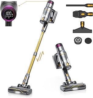 【Motor sin escobillas de 500W + succión fuerte de 40kpa】 El potente motor de aonus puede proporcionar una succión de hasta 40000Pa. Al mismo tiempo, con el potente cepillo para pisos LED, puede limpiar fácilmente cualquier parte de la casa. Perfecto para limpiar escombros, polvo, pelo de mascotas, alfombras, pisos de madera, mármol o muebles de sofá.