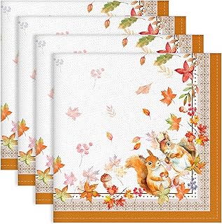 Juego de servilletas de tela: Juego de 4 servilletas de cocina, cada una de las cuales mide 45 x 45 cm, que te dan la opción de doblarlas cuidadosamente cuando las colocas sobre la mesa, para envolverlas alrededor de un juego de utensilios y realzar aún más el atractivo de la mesa.