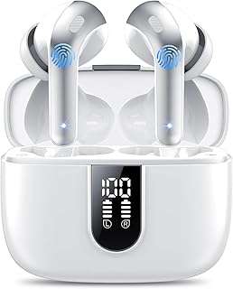 Pantalla LED de carga y 50 horas de reproducción: Auriculares bluetooth cuentan con una pantalla LED doble que muestra con precisión el nivel de batería tanto del compartimento de carga como de los auriculares Bluetooth. Además, Auriculares X08 tienen una duración de batería única de 8 horas, y el compartimento de carga proporciona 50 horas adicionales de uso.