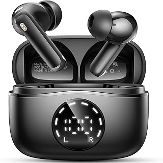 [48 Horas y Pantalla LED Doble] Solo el 10% de los auriculares inalambricos in ear pueden reproducir música y realizar llamadas durante 8 horas con una sola carga, mientras que el estuche de carga puede extenderlo a 48 horas. La pantalla LED muestra de manera precisa el nivel de batería restante tanto de los auriculares inalambricos Bluetooth como del estuche de carga. Además, la carga rápida USB-C permite cargar completamente el estuche en solo 1.5 horas