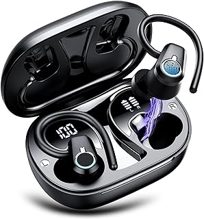 Diseño Ergonomico y IP7 Impermeable: Auriculares deportivos bluetooth cuentan con un innovador gancho para la oreja hecho de material TPE (elástico), lo que resuelve el problema de que los auriculares se caigan durante el ejercicio, sino que además son cómodos de llevar. El diseño IP7 resistente al agua puede evitar eficazmente que los auriculares inalámbricos sufran daños causados por las salpicaduras de sudor y gotas de lluvia para deportes al aire libre y ejercicio a largo plazo.