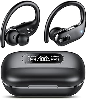 【Comfortable de llevar & IPX7 Impermeable】Auriculares inalámbricos deportivos con 3 pares (S/M/L) de auriculares de silicona suave, fuerza estable y uniforme. El extremo del gancho para la oreja está diseñado con antideslizante, por lo que el auriculares deporte no se caerá incluso durante el ejercicio extenuante. Con tecnología de sellado de costuras y nanorrevestimiento impermeable con clasificación IPX7, que los hace resistentes al sudor y la lluvia diarios.