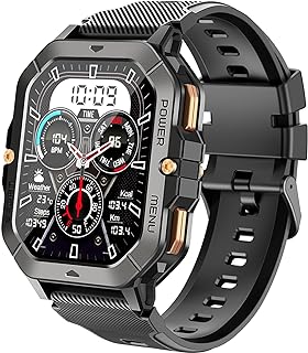 【5ATM smartwatch militar impermeable】El smartwatch militar para hombres está hecho de aleación de metal de zinc sólido, y el smartwatch es a prueba de golpes, resistente a los impactos y a prueba de polvo para deportes y aventuras profesionales al aire libre. Por encima de todo, puede mantener la función mormal incluso en muy bajo -30 ℃ y alta temperatura 70 ℃.Este smartwatch de los hombres es IP68 waterproof.You puede llevarlo en la profundidad del agua hasta 50m, y el smartwatch todavía mantener sus datos con precisión.