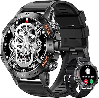 🔔【Características Adicionales y Compatibilidad】El smartwatch para hombre también tiene muchas funciones diarias, como control de música, cronómetro, temporizador, despertador y más. El reloj inteligente hombre con llamadas es compatible con Android 4.4 y IOS 8.0 y superiores, que pueden adaptarse bien a los teléfonos inteligentes y ofrecerle una mejor experiencia. El reloj inteligente de los hombres hace su vida más conveniente.