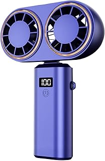 Velocidades de viento ajustables: Ventilador portátil. Velocidad de viento mejorada de 5 velocidades para una refrigeración potente. Fácil de usar, bastta con presionar un botón para cambiar entre las velocidades del viento. A cualquier velocidad de aire, mantenga pulsado el interruptor durante 2 segundos para apagar el ventilador.