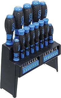 Contenido de suministro: destornillador plano: 3,0 x 75 mm – 5,5 x 100 mm – 6,0 x 100 mm | destornillador cruz ph: ph0 x 75 mm – ph1 x 75 mm – ph2 x 100 mm |destornillador de precisión plano: 2,5 x 50 mm – 3,0 x 50 mm |destornillador precisión cruz ph: ph00 x 50 mm – ph0 x 50 mm |destornillador de precisión con perfil en t (para torx): t6 x 50 mm – t8 x 50 mm |mango giratorio para puntas, entrada de hexágono interior 6,3 mm (1/4″), 75 mm |30 puntas, longitud 25 mm, entrada 6,3 mm (1/4″): plana: 4,0 – 6,0 mm, cruz ph: ph1 – ph2 – ph3, cruz pz: pz1 – pz2 – pz3, perfil en t (para torx): t10 – t15 – t20 – t25, hexágono interior: 3 – 4 – 5 – 6 mm