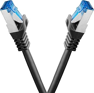 Alta velocidad de transferencia Gigabit de 10 Gbit, por lo tanto, mejor velocidad que los cables convencionales de Salmón en comparación con Cat.5 Cable Cat.5e o Cat.6 A, contactos dorados, protección para un agarre seguro y estable, conector RJ45 apantallado, indicación de longitud en la boquilla, adecuado para trabajos profesionales en el armario de red y servidores. Compatible con cable de red CAT5 CAT5e CAT6 CAT6a CAT7