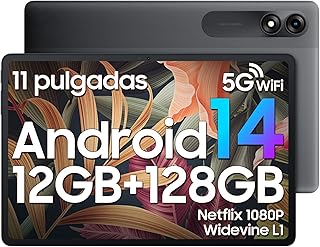 Soporte 5G WiFi & Widevine L1 & Bluetooth 5.0:Tablet android 14 está equipada con funciones de WiFi 5G y Bluetooth 5.0 para permitirle conectarse rápidamente al mundo digital y mejorar su eficiencia en el trabajo.Con Widevine L1, disfruta de videos claros en 1080p y películas en Disney+, Amazon Prime Video y Hulu con amigos y familia en la palma de tu mano.Además, cuenta con un conector de audio de 3.5mm para cargar y escuchar música sin interferencias.