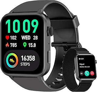 Reloj Inteligente Actualizado 2023: – El reloj inteligente hombre mujer Blackview está equipado con una pantalla táctil de alta definición de 1,85 pulgadas, que puede mostrar datos sin ningún problema incluso durante el día. El reloj deportivo tiene más de 100 esferas únicas para elegir y también se pueden personalizar con cualquier fondo de pantalla que desee en la Aplicación “Da Fit”.