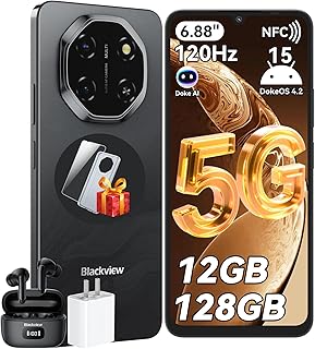 Blackview Shark 6 IA Telefonos Movile 5G, 6.88" 120HZ Android 15 Smartphone, 12GB+128GB / 2TB TF, 16MP + 8MP Smartphone 5G Dual SIM, Face ID/Fingerprint/OTG/GPS/Funda de Móvil/Pago NFC