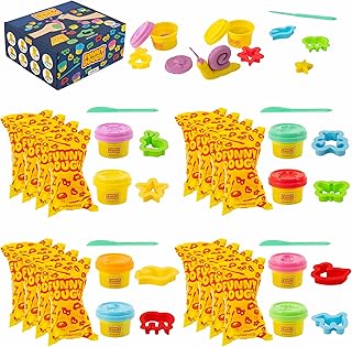 16 kit de plastilina para niños – Nuestro juego de plastilina incluye 16 bolsas de cumpleaños para niños con 2 cubos de plastilina diferentes, 2 tapas con moldes de animales, 2 moldes más con animales distintos y 1 herramienta