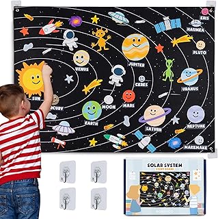 BONNYCO Sistema Solar para Niños con 61 Figuras Fieltro. Planetas Sistema Solar para Niños, Juguetes Montessori 3 4 5 6 7 8 Años. Juegos Educativos, Regalos Infantiles Planetario Cumpleaños Navidad