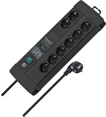 Regleta enchufes de 8 tomas con protección de los contactos y un cable de 3 m de longitud (H05VV-F 3G1.5), regleta con protección de sobretensión