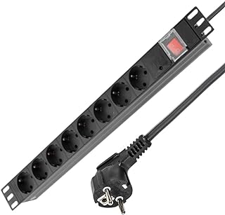 [ 8 TOMAS DE CORRIENTE ] Esta regleta de enchufes cuenta con 8 tomas de corriente (schuko) colocadas a 45º para facilitar la conexión de varios adaptadores de red voluminosos a la vez y facilitar su uso, cuentan con cable de tierra y cable de 2m, es ideal para dar corriente a los armarios rack de 19″, su instalación es mínima.