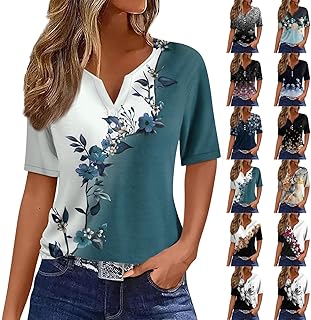 Camiseta Mujer Manga Corta Basicas Verano Blusas Botones Deportiva Camisetas Cuello V Casual Básica T Shirts Estampado