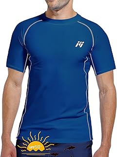 Camiseta Natación Hombre, UV Manga Corta/Larga Rash Guard Camiseta de Protección UPF 50+Secado Rápido Deportes Acuáticos Surf Natación Verano