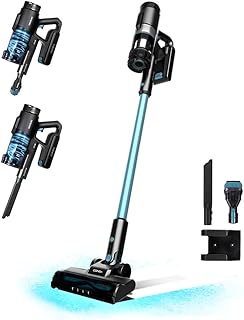 Aspirador sin cables 3 en 1: vertical, escoba y de mano, con motor con escobillas, máxima potencia de succión y diseño 360º para eliminar el polvo de cualquier lugar. Batería de Ion-Litio de 2200 mAh y 25,2 V que consigue una autonomía de hasta 45 minutos y reduce el tiempo de carga a 4-5 horas. Podrás aspirar toda tu casa sin necesidad de recargarlo.