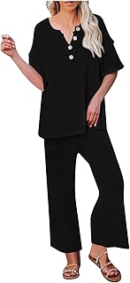 Chandal Mujer 2024,Casual Conjunto Mujer de Dos Piezas Color Sólido Trajes de Casa Camiseta Manga Larga con Cuello V y Pantalones Pierna Ancha Sueltos Ligera Cómodo Conjuntos de Hogar