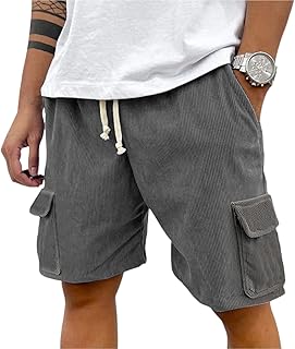【Características y detalles】. Pantalones cortos de pana para hombre para el verano, confeccionados con un tejido suave y elástico. ღ ღ La cintura elástica y el cordón ajustable garantizan un ajuste perfecto, con bolsillos funcionales a ambos lados y en la parte trasera. ღ◕‿◕ღ
