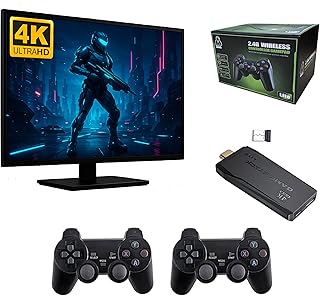 Consola de juegos retro MT8 con 40000 juegos clásicos. Game stick lite 4K con salida HDMI y tarjeta microSD 64GB. Game stick portátil con dos mandos inalámbricos de 2,4GhZ y juegos incorporados.