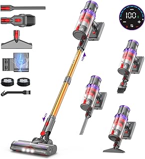 Pantalla Táctil LED Inteligente: La versión mejorada cuenta con una pantalla táctil de 90mm que permite ajustar la succión y cambiar al modo automático con un solo toque. Muestra en tiempo real el estado de funcionamiento y la cantidad de batería restante, lo que facilita el seguimiento del uso de la aspirador escoba.