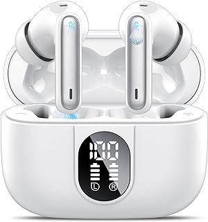 40 H y Doble Pantalla LED: El estuche de carga con capacidad de batería de 300 mAh puede cargar los audiculares una vez (1,5 h) puede reproducirse durante 6 a 8 h, y el estuche de carga puede cargar los cascos bluetooth 3 o 4 veces. Disfruta de un total de 40 h s de música con el estuche de carga. Pantalla de alimentación digital dual, es fácil saber la energía restante del estuche de carga, cuando coloca los earbuds en el estuche de carga, puede saber exactamente que se están cargando.
