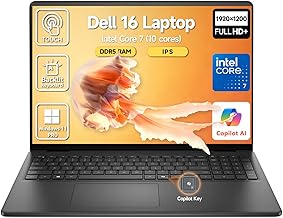 Dell 16 Laptop Touchscreen Computer, 16" FHD+ Touch Screen Student & Business Laptop PC, Intel Core 7 (10-Core, Beat i7-1355U), 24GB DDR5 1TB SSD, Windows 11 Pro, Backlit Keyboard 10-Key, Copilot Key
