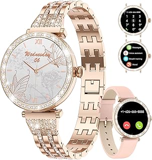 【Compacto y Elegante】El reloj inteligente para mujer está fabricado en acero inoxidable 304, adecuado para muñecas con una circunferencia de 150 a 195 mm, siendo ligero y suave, lo que lo hace cómodo de llevar y apto para el uso diario. La correa de acero inoxidable cuenta con un delicado acabado con diamantes, un diseño único en el dial o líneas curvas fluidas, que combinan estilo y encanto femenino.