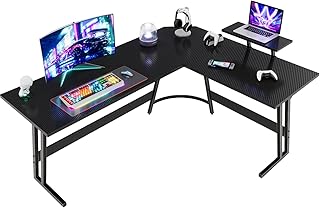 Estructura Robusta y Estable:Nuestro escritorio en forma de L está hecho de materiales y marco de metal resistente, y viene con dos tratamientos de refuerzo, que pueden mantener un soporte estable tanto para juegos intensos como para gran cantidad de documentos de oficina