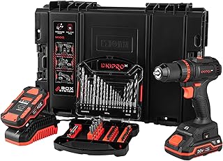 KIT COMPLETO PARA TODAS TUS NECESIDADES: Incluye juego de brocas profesional de 41 piezas, puntas atornillador y brocas para metal, brocas pared y hormigón. Un taladro atornillador batería 20V listo para cualquier trabajo de bricolaje.