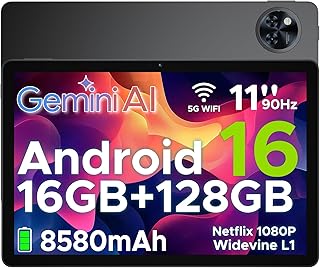 DOOGEE U11 Tablet 11 Pulgadas, Tablet Android 16 Octa Core 5G WiFi, 16GB RAM+128GB ROM (TF 2TB) 8580mAh | Tableta Niños Widevine L1 | Bluetooth 5.0 | 13MP+5MP | Face ID | GPS | OTG