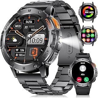 DREMAC Militar Reloj Inteligente Hombre con Linterna, 1.43" AMOLED Smartwatch Hombre con Llamadas Bluetooth, Monitor de Sueño, Podómetro, Deportivos Exteriores Negro Smartwatch para Android iOS 530mAh