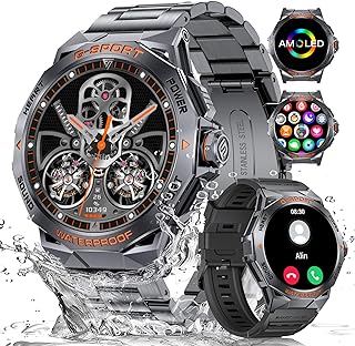 ⌚【¿Qué puede hacer el smartwatch militar EF3?】 – Android e iOS compatible con smartwatch hombre cubre llamadas, recordatorios de mensajes, seguimiento de actividad, seguimiento multideporte, frecuencia cardíaca, SpO2, presión arterial, seguimiento del sueño y el clima, etc.Doble pulsera para ocasiones diarias y oficiales. IP68 impermeable puede funcionar en cualquier entorno. El reloj inteligente es potente e inteligente, basta una simple conexión bluetooth con el DREMAC EF3 para comenzar una vida sana con el smartwatch EF3.