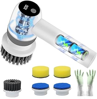EBUYFIRE Cepillo Electrico Limpieza Hogar, 360 ° Rotación Inalámbrico Cepillo Limpieza Electrico, 2 velocidades, Cepillo Limpieza Baño con 5 Cabezales de Cepillo, Kit de Limpieza para Cocina, azulejo