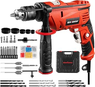 Enventor Taladro Percutor con Cable 900W, 37 Accesorios, Función 2 en 1, Velocidad Variable 0-3000RPM, Mango Auxiliar de 360°, Portabrocas de 13MM, para Concreto, Metal y Madera