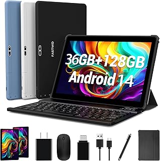 ♥Google GMS tablet Android 14 ♥FASTWD Tableta viene con el último Android 14 y tableta táctil también es compatible con personalización de iconos de aplicaciones y la adición de widgets de escritorio. Equipada con 36 GB RAM (12 GB + 24 GB de memoria virtual) y 128 GB ROM (ampliable mediante 1 TB Micro SD).FASTWD tableta realiza sin problemas tareas como juegos, ofimática y audio.