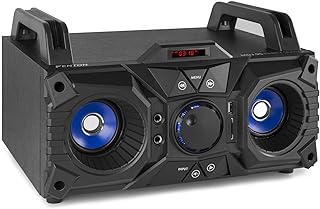 Karaoke: Con el altavoz bluetooth potente Fenton MDJ95 ¡también puedes cantar! El mini altavoz bluetooth MDJ95 está equipado con dos entradas de micrófono a las que se puede conectar tus micrófonos (no incluidos). La señal de los micrófonos se puede mejorar con el efecto de eco incorporado.