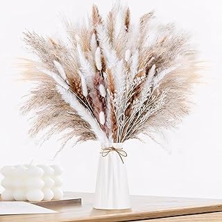 Materiales de alta calidad: Hierba de la Pampa natural secada al aire, . Se conservan los ricos colores de las flores reales. Altura perfecta: La longitud de la flor seca es de aprox. 40 cm, puede cortar la longitud de la flor seca como desee, acortarla al tamaño deseado y colocarla en su jarrón.